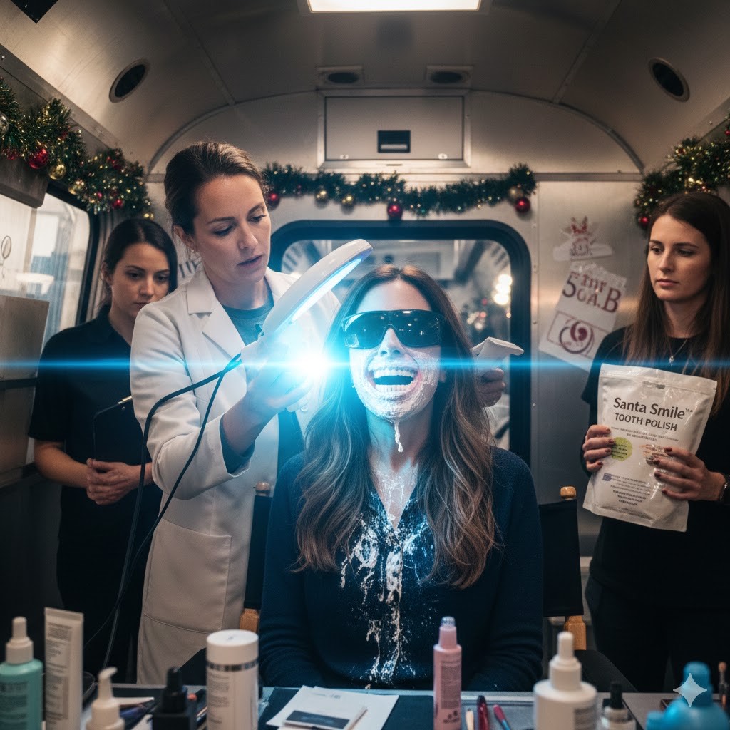 Well that was constructively awkward!! More awkward still is the grueling procedure required to ensure cast member’s teeth are the perfect shade of “Hallmark White”. Since theirs is a volume business, the chargeback to production was nominal…phew!!!