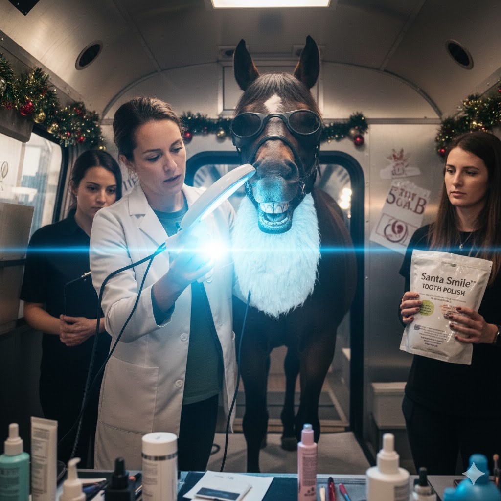 “I am trying to get back to Christmasburg you insensitive clod!” Holly Sugarbelle politely convinces the TSA Agent her emotional support horse “Stable Clause” is just fine to fly on her lap.